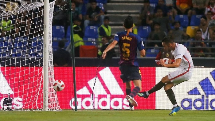 Di Stade de Tanger, Maroko, Senin (13/8/2018), perdebatan langsung muncul di menit kesembilan usai pemain Sevilla Pablo Sarabia merobek gawang Barcelona. Posisinya dianggap sudah offside saat menerima sodoran di sisi kanan kotak penalti Blaugrana.