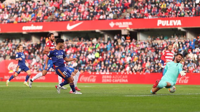 Granada vs Real Madrid yang berlangsung di Nuevo Los Carmenes, tuntas Senin (22/11/2021) dini hari WIB. Los Blancos memimpin 2-1 di babak pertama lewat Marco Asensio dan Nacho, yang kemudian diperkecil oleh Luis Suarez.
