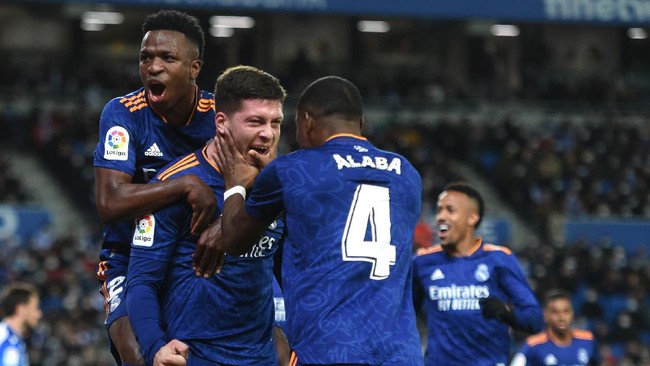 Madrid meraih poin sempurna dalam jornada ke-16 LaLiga. Bertandang ke markas Real Sociedad di Stadion Anoeta, Minggu (5/12/2021), Los Blancos menang 2-0.