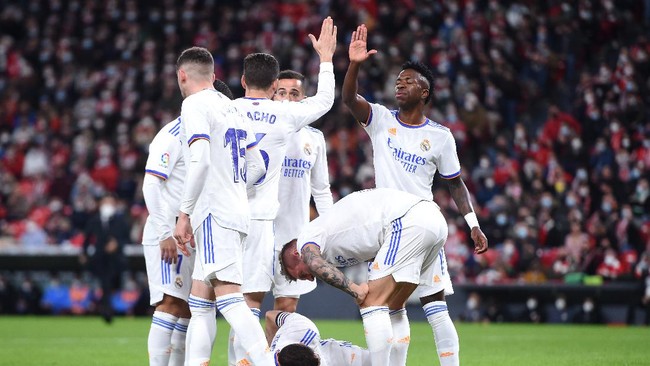 Real Madrid saat ini masih menduduki puncak klasemen sementara Liga Spanyol 2021/2022 dengan 46 poin. Karim Benzema dkk unggul lima angka dari rival terdekatnya, Sevilla.