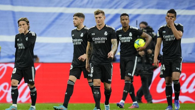 Real Madrid vs Barcelona berlangsung di Santiago Bernabeu, Senin (21/3/2022) dini hari WIB. Anak asuh Carlo Ancelotti tertinggal 0-2 di babak pertama lewat gol Pierre-Emerick Aubameyang dan Ronald Araujo.