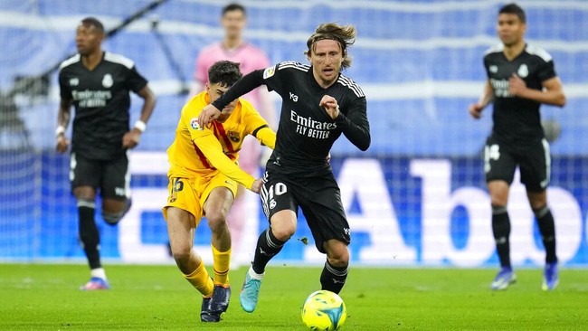 Real Madrid dipermalukan Barcelona 0-4 di Santiago Bernabeu pada El Clasico di Liga Spanyol, Senin (21/3/2022) kemarin. Bermain di hadapan para pendukungnya sendiri, Madrid tampil buruk dan kesulitan mengembangkan permainan.