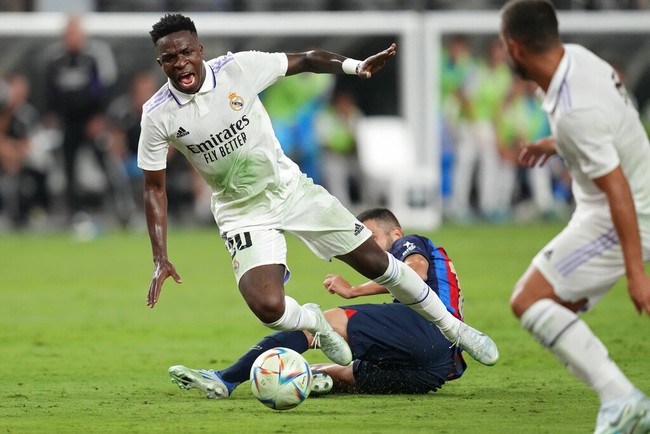 Laga pramusim bertajuk El Clasico Real Madrid vs Barcelona berlangsung di Allegiant Stadium, Nevada, AS Minggu (24/7) pagi WIB. Kedua tim turunkan skuad terbaik, termasuk mainkan pemain-pemain baru.