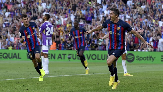 Barcelona menang telak 4-0 saat menjamu Real Valladolid di Camp Nou, Senin (29/8/2022) dini hari WIB, dalam lanjutan Liga Spanyol. Bermain trengginas sejak sepak mula, Barca mendapatkan dua gol dari Lewandowsi dan masing-masing satu dari Pedri dan Sergi Roberto.