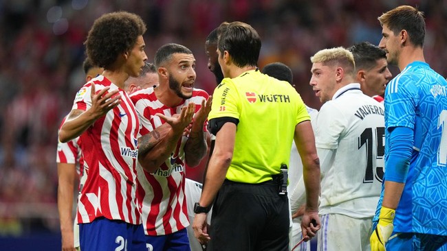 Atletico Madrid kehilangan Mario Hermoso di masa injury time, saat berupaya mengejar gol kedua kontra Real Madrid. Kartu merahnya menjadi kontroversi.