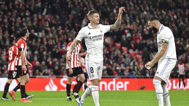 Pada laga yang dihelat di San Mames, Senin (23/1/2023) dini hari WIB, Madrid mencetak gol di masing-masing babak dari Karim Benzema dan Toni Kroos.