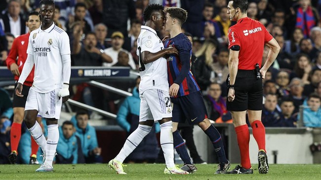 Laga El Clasico antara Barcelona vs Real Madrid di semifinal Copa del Rey berjalan panas. Dua pemain dari kedua tim, Gavi dan Vinicius Junior, sampai ribut.