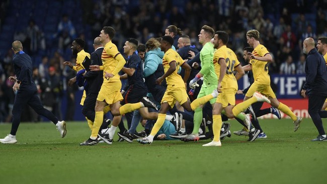 Barcelona menang 4-2 dalam laga yang berlangsung di RCDE Stadium, Senin (15/5/2023) dini hari WIB. Dengan hasil itu, mereka kukuh di puncak klasemen sementara dengan 85 poin dari 34 laga, dan tak akan bisa disalip siapapun hingga akhir musim.