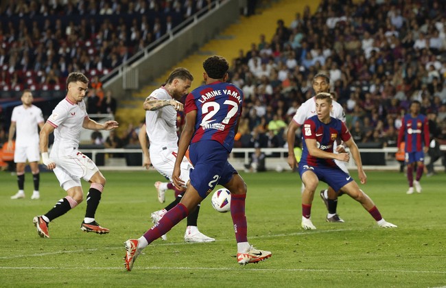Di menit ke-76, kebuntuan Barcelona pecah. Sundulan Yamal menyambut umpan lambung Ferran Torres membentur kaki Sergio Ramos dan si kulit bundar malah bergulir ke gawangnya sendiri.
