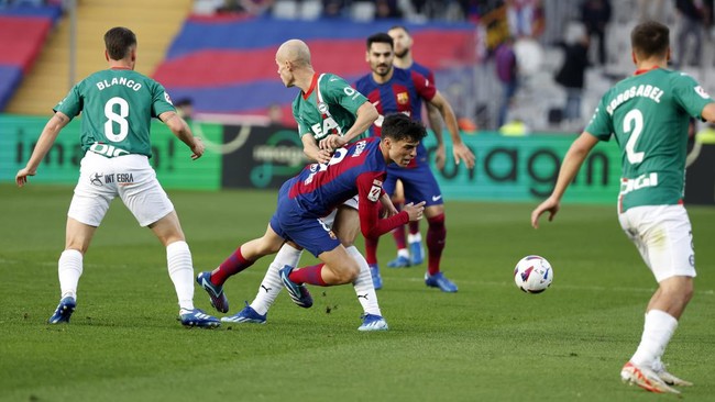 Barca menjamu Alaves di Stadion Montjuic pada pertandingan LaLiga, Minggu (12/11/2023). Los Blanquiazules langsung membungkam publik tuan rumah setelah Samu Omorodion membuka skor hanya setelah 18 detik.