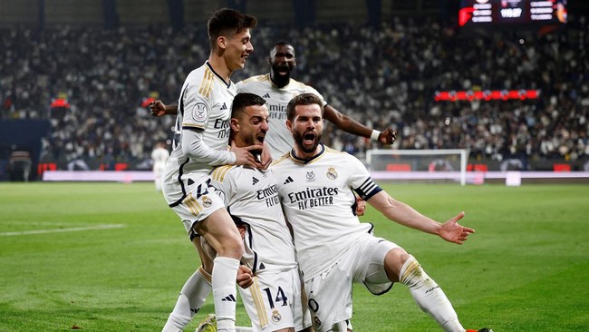 Real Madrid kini tinggal menunggu lawan di final Piala Super Spanyol. Pertandingan semifinal lainnya mempertemukan Barcelona dengan Osasuna pada Jumat (12/1/2024) dini hari WIB.