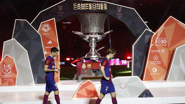 Barcelona tumbang 4-1 atas Real Madrid di Final Piala Super Spanyol yang digelar di King Saud University, Senin (15/1/2024) dini hari WIB. El Real menang berkat hat-trick dari Vinicius Jr serta torehan Rodrygo. El Barca hanya mampu membalas melalui Robert Lewandowski.