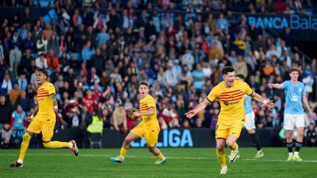 Barcelona berhasil meraih kemenangan 2-1 atas Celta Vigo pada laga lanjutan Liga Spanyol di Stadion Abanca Balaidos pada Minggu (18/2/2024). Robert Lewandowski menjadi bintang kemenangan El Barca pada laga ini.