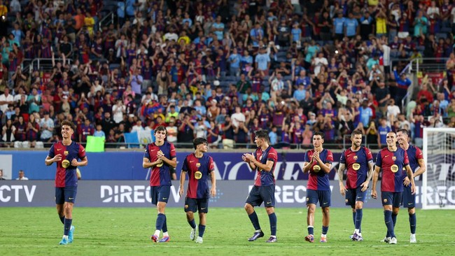 Barcelona melakoni laga ujicoba pramusim kontra City di Camping World Stadium, Rabu (31/7/2024) malam WIB. Barcelona dua kali unggul lewat Pau Victor pada menit ke-24 dan Pablo Torre pada menit kedua injury time babak pertama.