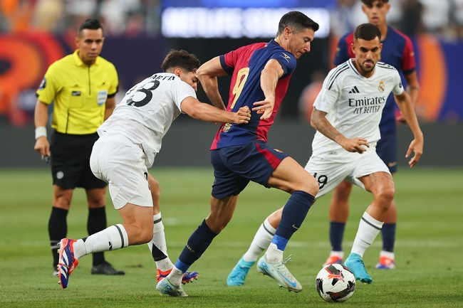 Real Madrid baru bisa mencetak gol balasan di 10 menit terakhir. Sepak pojok Arda Guler diselesaikan Nico Paz dengan sundulan ke sudut atas gawang Barcelona untuk memperkecil skor.