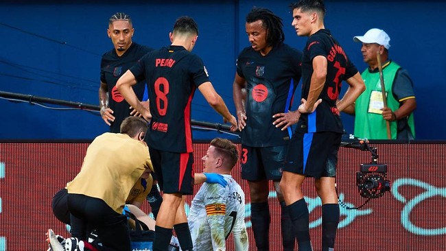Marc-Andre ter Stegen mengalami cedera saat Barcelona menang telak di markas Villarreal 5-1 pada Minggu (22/9) waktu lokal. Hasil pemeriksaan mengungkap bahwa Ter Stegen mengalami kerusakan tendon patela pada lutut kirinya.