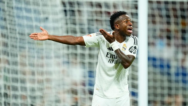 Vinicius disorot saat Real Madrid mengalahkan Alaves dalam pertandingan LaLiga di Bernabeu, Rabu (25/9/2024) dini hari WIB. Winger Madrid itu sempat protes keras dan menyindir wasit.