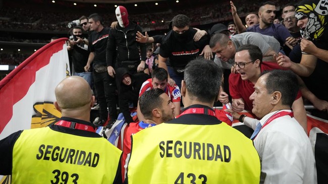 Kericuhan pecah dalam derby Atletico Madrid vs Real Madrid. Kiper Madrid Thibaut Courtois dilempari berbagai benda oleh para suporter tuan rumah.