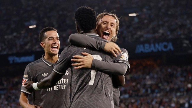 Real Madrid membawa pulang tiga poin saat bertandang ke markas Celta Vigo di Balaidos, Minggu (20/10/2024) dini hari WIB. El Real membuka keunggulan lewat Kylian Mbappe. Williot Swedberg sempat menyamakan kedudukan. Vinicius Junior kemudian menjadi pahlawan kemenangan tim tamu.