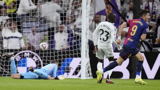 Striker Barcelona Robert Lewandowski dua kali membobol gawang Real Madrid di El Clasico. Lewandowski pun kian kukuh di posisi teratas daftar top skor Liga Spanyol.