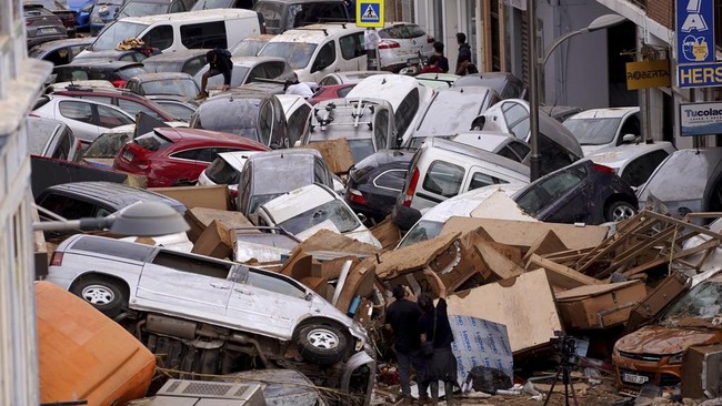 Badai Dana yang terjadi pekan lalu memicu banjir bandang di Valencia. Hingga saat ini, setidaknya sudah ada 217 korban jiwa.