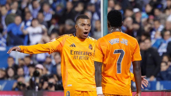 Real Madrid berhasil menang 3-0 atas Leganes pada laga pekan ke-14 La Liga 2024/2025 di Estadio Municipal de Butarque, Senin (25/11/2024). Tiga gol kemenangan El Real lahir melalui Kylian Mbappe, Federico Valverde, dan Jude Bellingham.