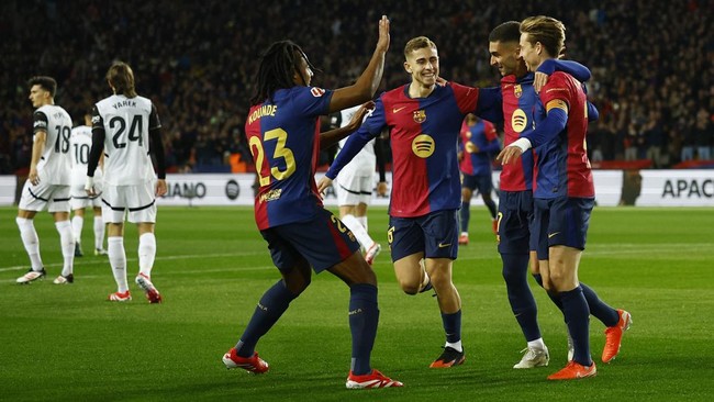 Barcelona menjamu Valencia di Estadi Olimpic Lluis Companys dalam lanjutan LaLiga, Senin (27/1/2025) dini hari WIB. Blaugrana menang 7-1 atas tim tamu.