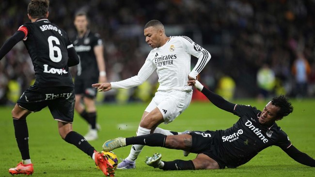 Real Madrid menjamu Leganes di Santiago Bernabeu, Minggu (30/3/2025) dini hari WIB, dalam lanjutan Liga Spanyol. Tuan rumah membuka keunggulan lewat penalti Kylian Mbappe pada menit ke-32, yang langsung dibalas Leganes melalui Diego Garcia.