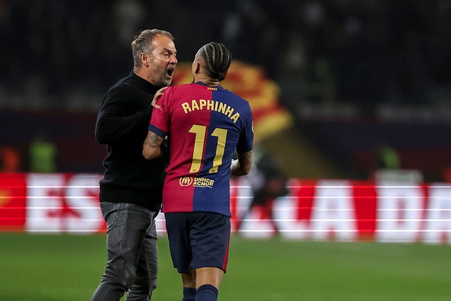 Raphinha melepas tiga tembakan ke gawang Real Betis, hanya satu yang berujung gol. Tidak jelas apa penyebab Raphinha marah-marah, tapi Hansi Flick membelanya.