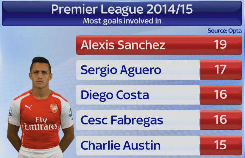 Dia memang masih kalah subur dibanding Diego Costa, Sergio Aguero, dan Charlie Austin. Tapi secara keseluruhan Alexis Sanchez adalah salah satu pemain terbaik Liga Inggris musim ini.