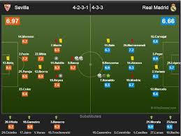 Real Madrid belum bisa bangkit dari kekalahan di El Clasico. Mereka harus menyerah 1-2 di kandang Sevilla FC, stadion Ramon Sanchez Pijuan. Kekalahan Madrid kali ini tak lepas dari terlalu tingginya defensive-line mereka yang mampu dimanfaatkan dengan baik oleh counter attack Sevilla.