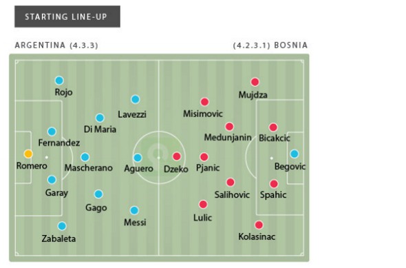 Meski dianggap bergabung di grup yang relatif mudah, melawan Bosnia mungkin menjadi ujian terberat bagi Argentina di fase ini. Pasukan SuΕ‘iΔ bukanlah lawan yang enteng dengan sejumlah pemain mereka yang bermain di beberapa liga terkuat di Eropa.
