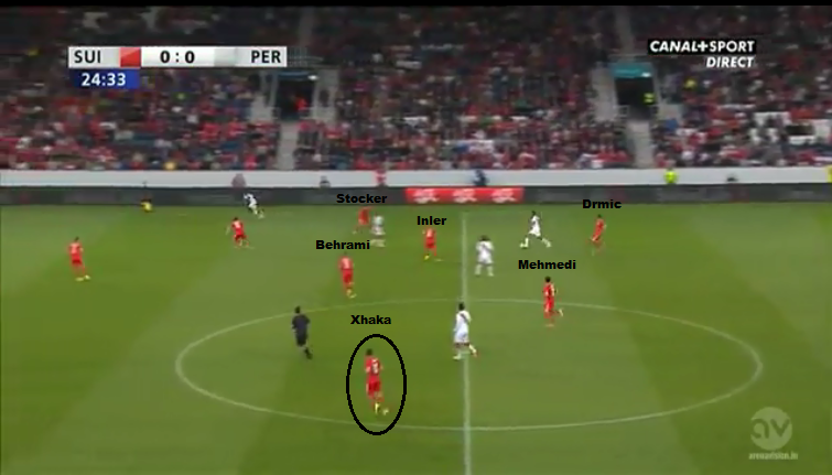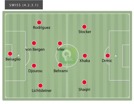 Jika Mehmedi dan Xhaka dimainkan berbarengan, maka posisi yang terancam adalah Shaqiri di sebelah kanan. Mehmedi yang sejatinya berposisi sebagai sayap kiri, sering dicoba sebagai sayap kanan ataupun gelandang serang tengah. Sementara pos sayap kiri akan ditempati Stocker yang "menendang" Barnetta ke bangku cadangan.