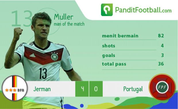 Mueller memang sangat berperan besar pada pertandingan malam tadi. Meski tak sedominan Kroos, Goetze, dan Oezil yang tingkat passing-nya di atas 90%, tapi pergerakan Mueller dua kali mampu mengecoh bek lawan dan menjadi gol.