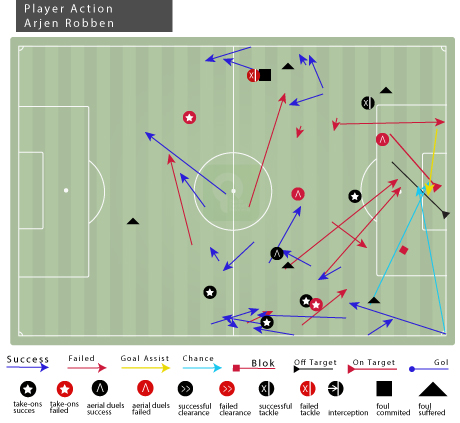 Pada malam itu, Robben berhasil membuat 4 buah take-on, dua buah key pass, dan sebuah assist manis kepada Depay.