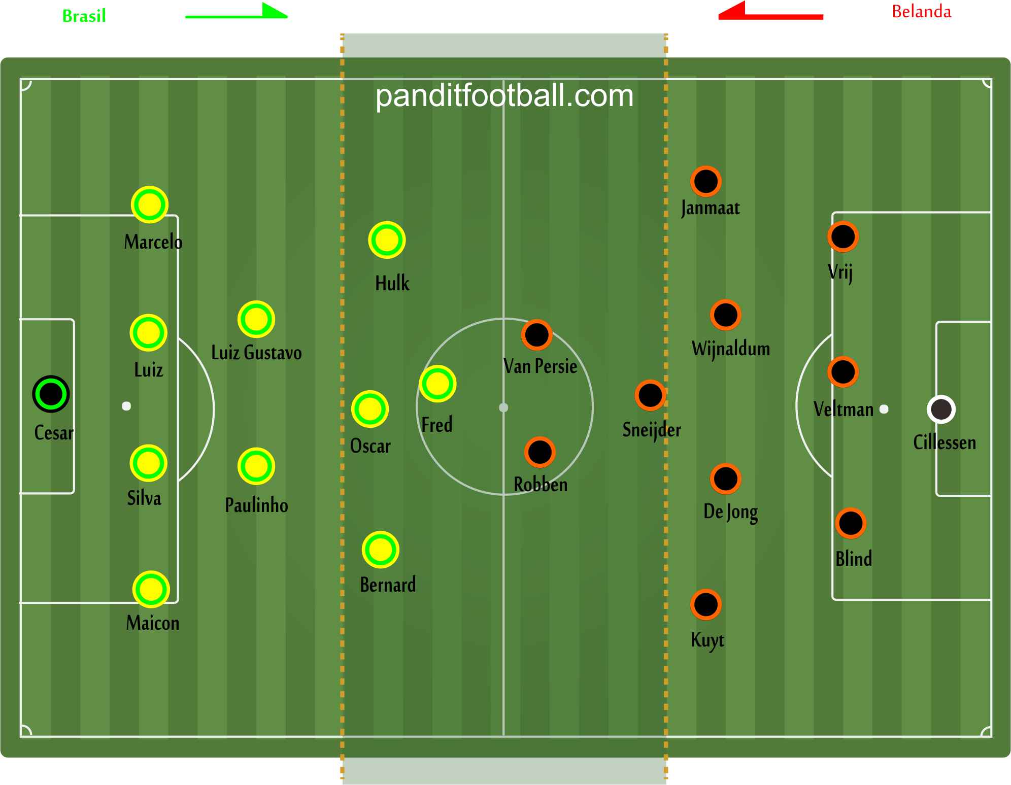 Van Gaal beruntung karena Scolari selalu menurunkan formasi yang sama dan pemain yang sama. Dengan menyaksikan rekaman pertandingan ke belakang tampaknya Van Gaal dapat menerka celah yang bisa ia manfaatkan.