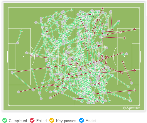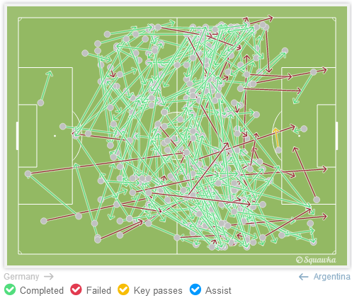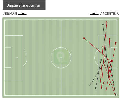 Dari 14 umpan silang yang dilakukan Jerman, hanya satu yang berasal dari sisi sebelah kiri
