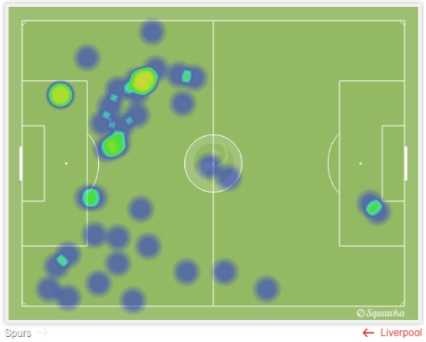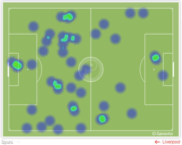 Grafis Heatmap Eric Dier (Spurs) β Moreno (Liverpool) [squawka]