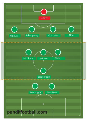 Pada laga itu, RD menduetkan Ambrizal dan O.K. John di lini belakang, sementara Ricardo Salampessy dan Alfin sebagai fullback. Itu artinya, Kipauw kembali dinaikkan menjadi pemain sayap yang otomatis menggeser Fandi Eko sebagai pemain cadangan.