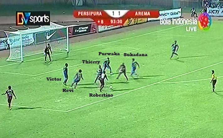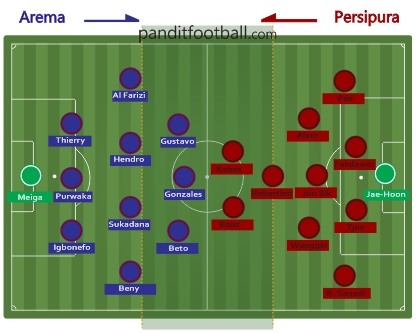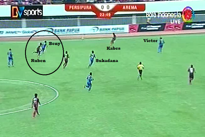 Dengan mendapatkan pressing seperti ini, Persipura pun sering kesulitan mendistribusikan bola karena selalu mendapatkan tekanan. Alhasil pada awal-awal babak pertama Arema terlihat lebih mendominasi pertandingan.