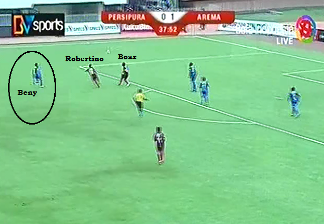 Namun, kombinasi ciamik ketiganya ini tak diimbangi dengan pertahanan Arema yang selalu memiliki celah di kedua sayapnya. Beny Wahyudi dan Ahmad Al Farizi yang bermain sebagai wingback sering dengan mudah dilewati oleh lini penyerangan Persipura.