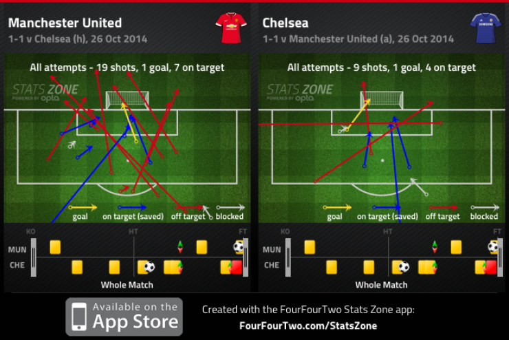 Meskipun penguasaan bola kedua tim hampir seimbang (51% berbanding 49%), United terlihat lebih gahar di depan sementara pertahanan Chelsea sedikit kendor. Hal ini ditunjukkan dengan jumlah peluang yang tercipta melalui tembakan ke gawang, yaitu 19 berbanding 9.
