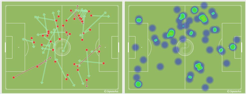 Grafik operan dan heat map Fellaini (sumber: Squawka)