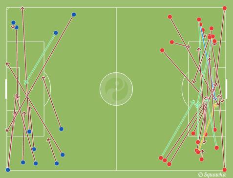 Dua gol yang United cetak sama-sama berawal dari umpan silang. Pada pertandingan ini United memang melepaskan 24 buah umpan silang, namun hanya 7 buah saja yang tepat sasaran.