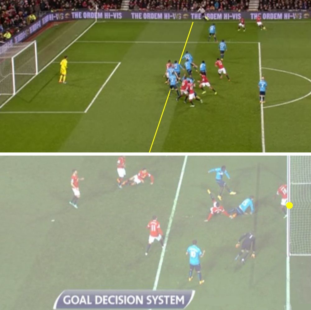 Sementara yang kedua terjadi pada gol kemenangan United. Pada saat Mata menendang bola, Rojo berada pada posisi offside, entah ia menyentuh bola ataupun tidak, karena ia terlibat langsung pada permainan.