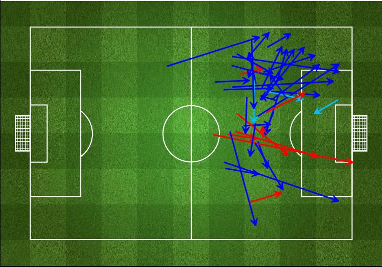 Grafis umpan sepertiga akhir Kovacic selama 90 menit