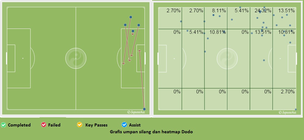 Grafis umpan silang dan heatmap Dodo (Squawka.com)