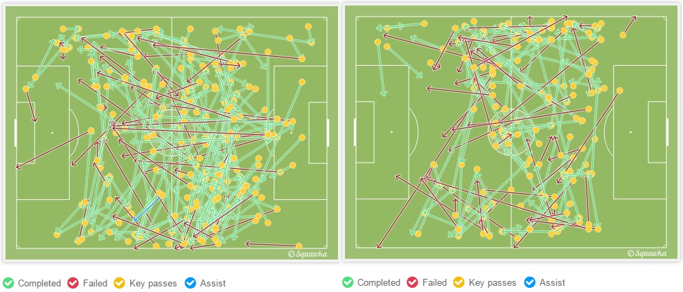 Grafis umpan Lazio babak satu (kiri) dan babak dua (kanan) (Squawka.com)