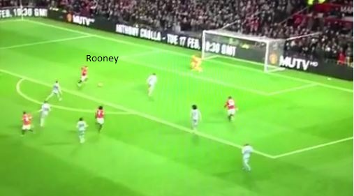 Pergerakannya lagi-lagi tanpa disadari oleh Colocini dkk., yang terlalu fokus kepada bola. Lagi-lagi, kegagapan pemain Newcastle terhadap Rooney ini juga berbarengan dengan kagagalan mereka mengantisipasi pergerakan Mata yang muncul ke depan kotak penalti dan leluasa mengirimkan umpan pada Rooney.
