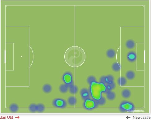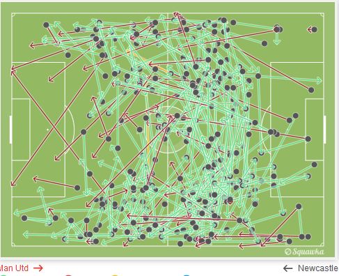 Berikut grafis passing Newcastle yang jarang sampai tepat di kotak penalti MU.